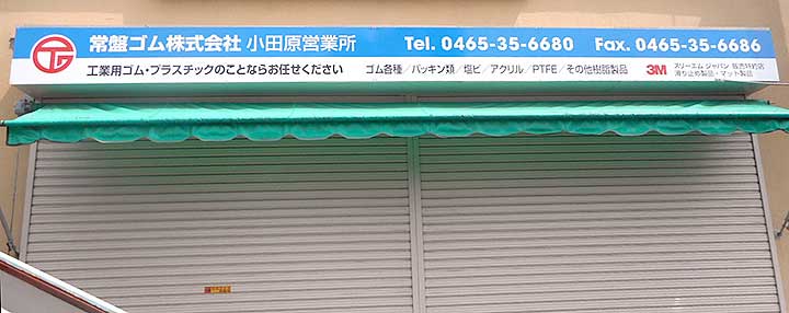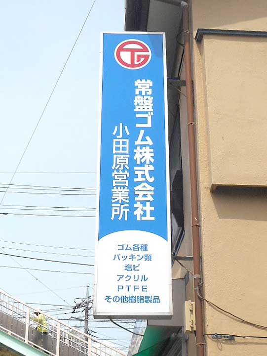 工業用ゴムやプラスチック、金属製品の加工・販売の常盤ゴム株式会社小田原営業所様の看板リニューアル(既存の看板撤去と新看板取り付け)を承りました。