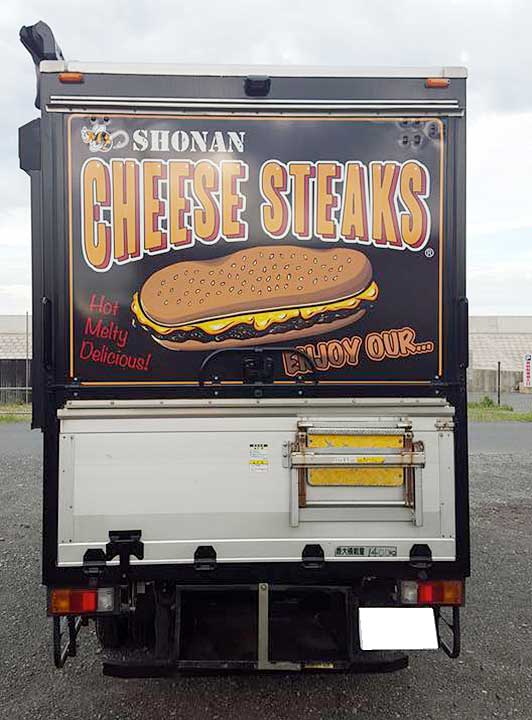 車輌はハンバーガーのキッチンカー(移動販売車)ですが、ブラックの車体に、ロゴも店名も映える仕上がりになりました。