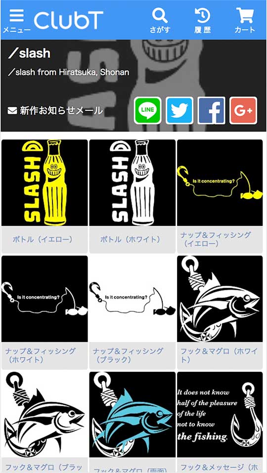 オリジナルプリントグッズの通販サイト、ClubT(クラブティー)にて/slashブランドのTシャツやスウェットシャツの販売を開始いたしました。