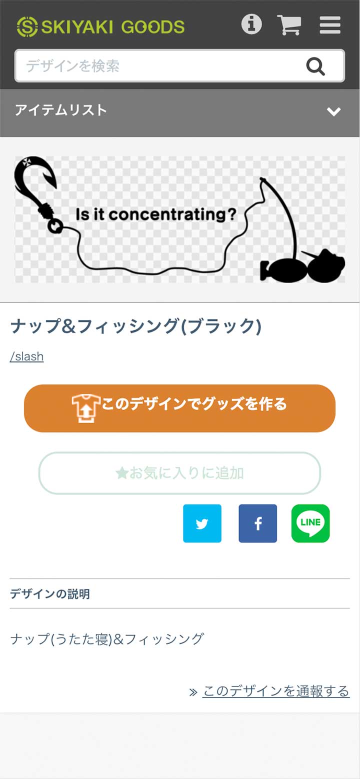 SKIYAKI GOODSは、以前ご紹介したTシャツトリニティー、Up-Tと同じように、登録されているデザインと取り扱いアイテムを組み合わせてオリジナルプリントグッズを作成できるサービスです。