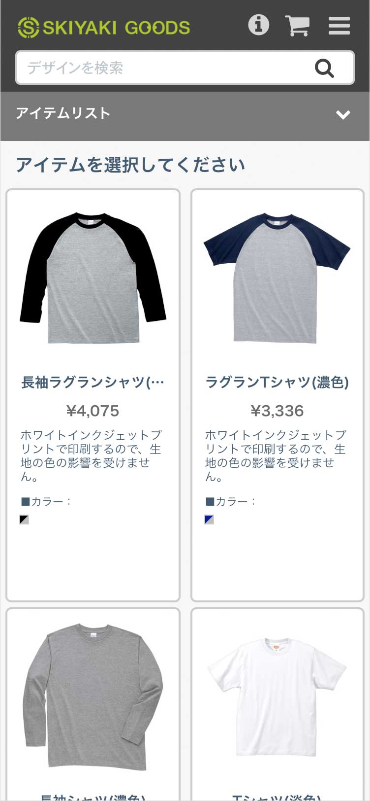 SKIYAKI GOODSのデザイン一覧ページ