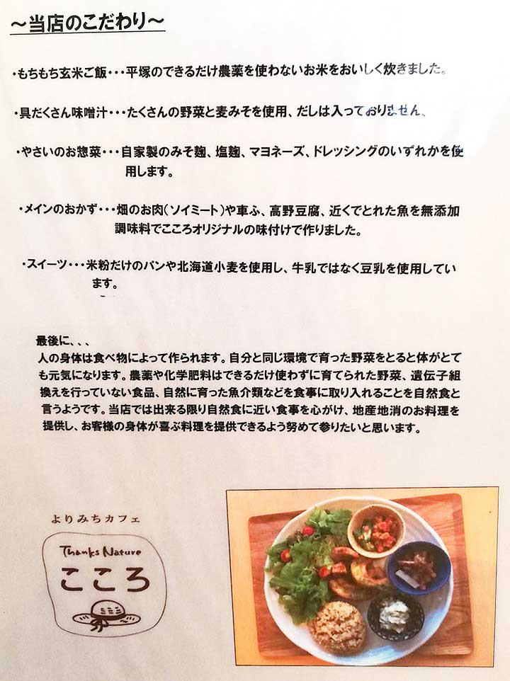 食材にこだわっていらっしゃるそうで、お年寄りにも優しい、身体が喜ぶ、野菜をふんだんに使った料理を提供されるそうです。
