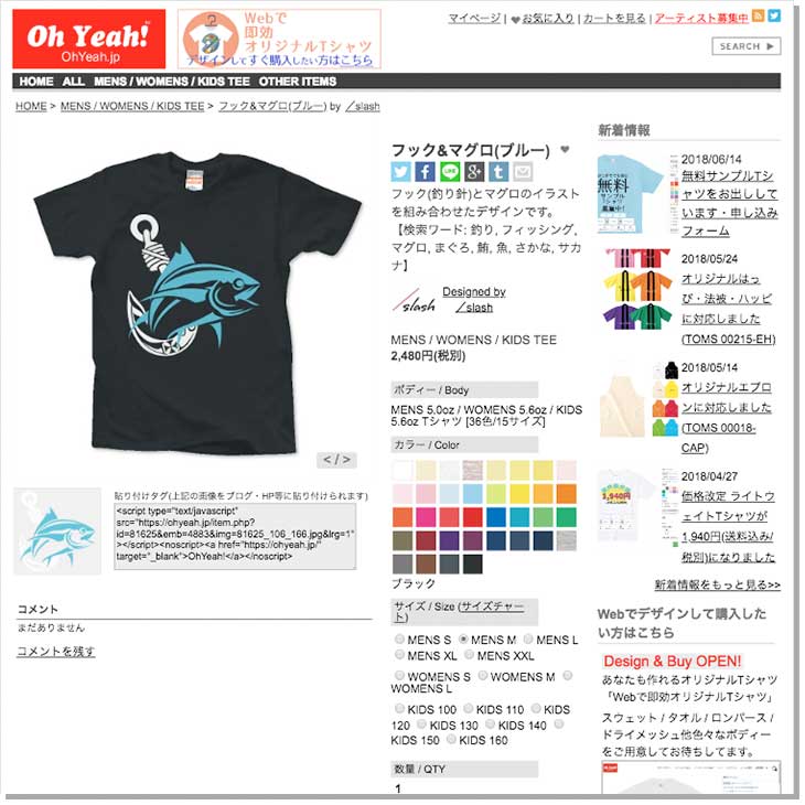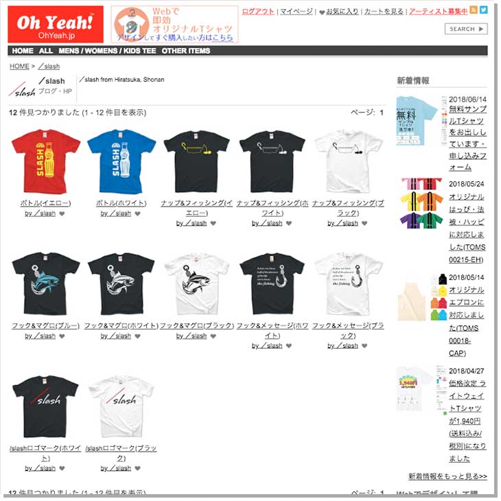 オリジナルプリントTシャツの通販サイト、Oh Yeah!にて/slashブランドのTシャツの販売を開始いたしました。