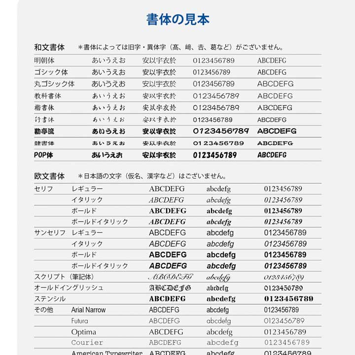名刺のレイアウトや書体の参考にしていただくための見本をPDFで公開いたしました。