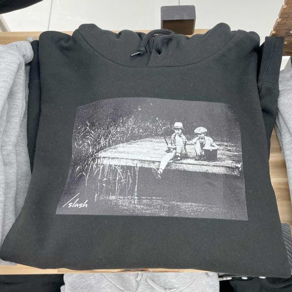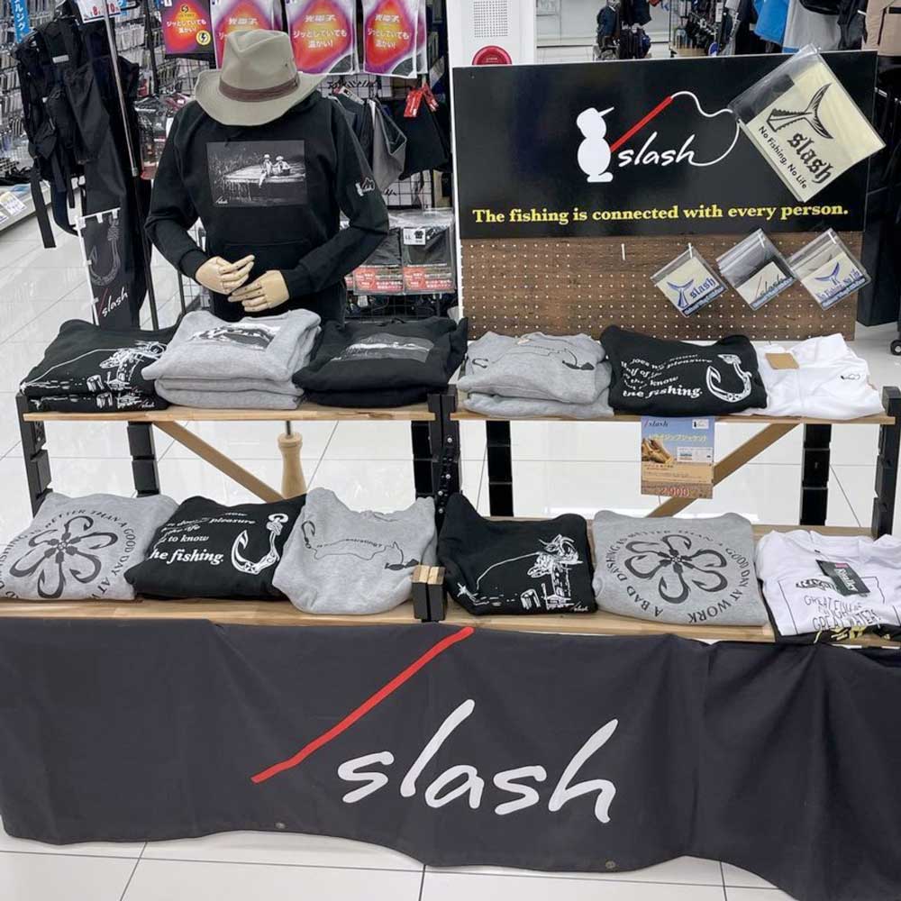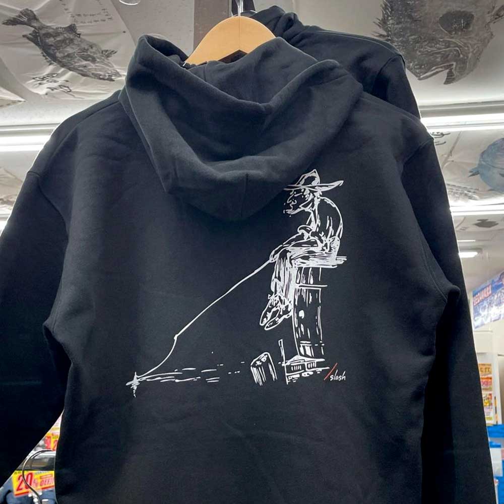 12月からかめや釣具さんの平塚店、富士店、清水店の店頭にて/slashブランドのプリントパーカを販売中です。