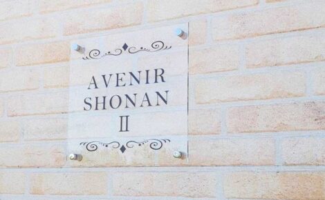 神奈川県藤沢市鵠沼橋の新築木造アパート、コーポ鵠(くぐい)の館銘板と部屋番号プレートを製作・施工いたしました。最近この元請け様がよく採用