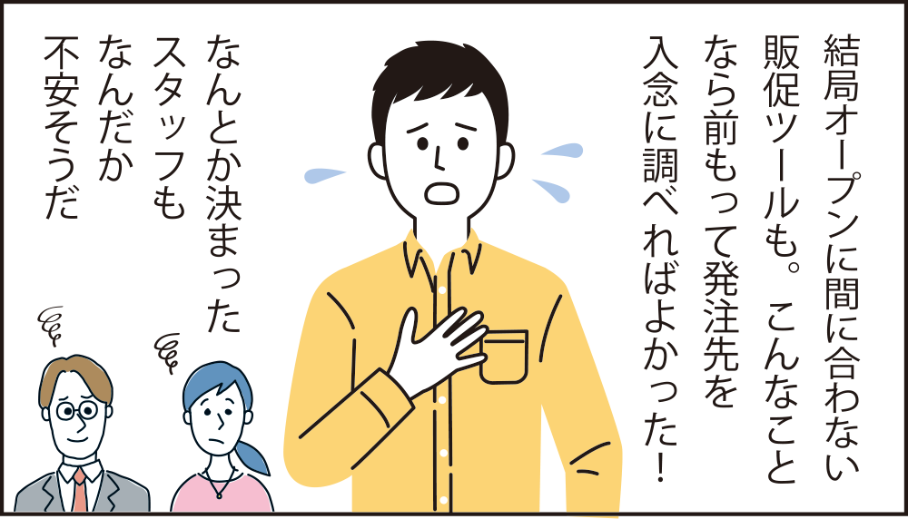 ツールごとに異なる納期管理も当社にお任せください。オープン等の期限に合わせて一括調整するため、各業者へ個別に確認する手間がなくなり、納品まで安心してお任せいただけます。