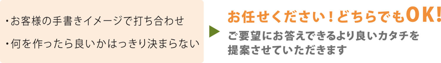 デザインや用途、ご要望について綿密なお打ち合わせを行います。