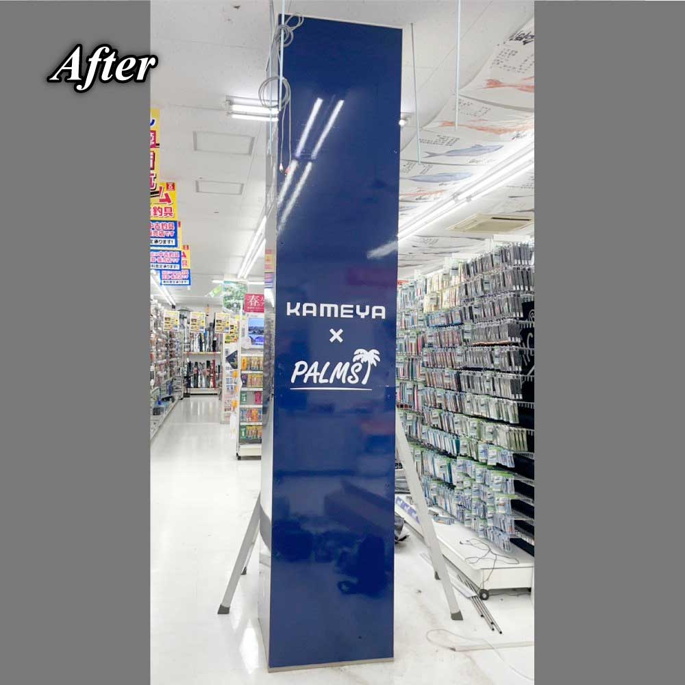神奈川県平塚市の釣具店、かめや釣具平塚店様にて店内の柱に装飾用のパネルを設置しました。