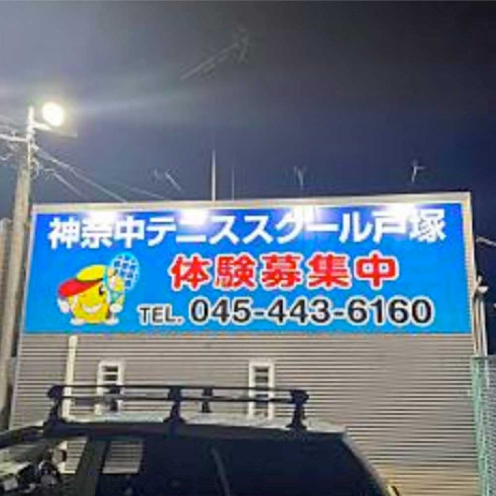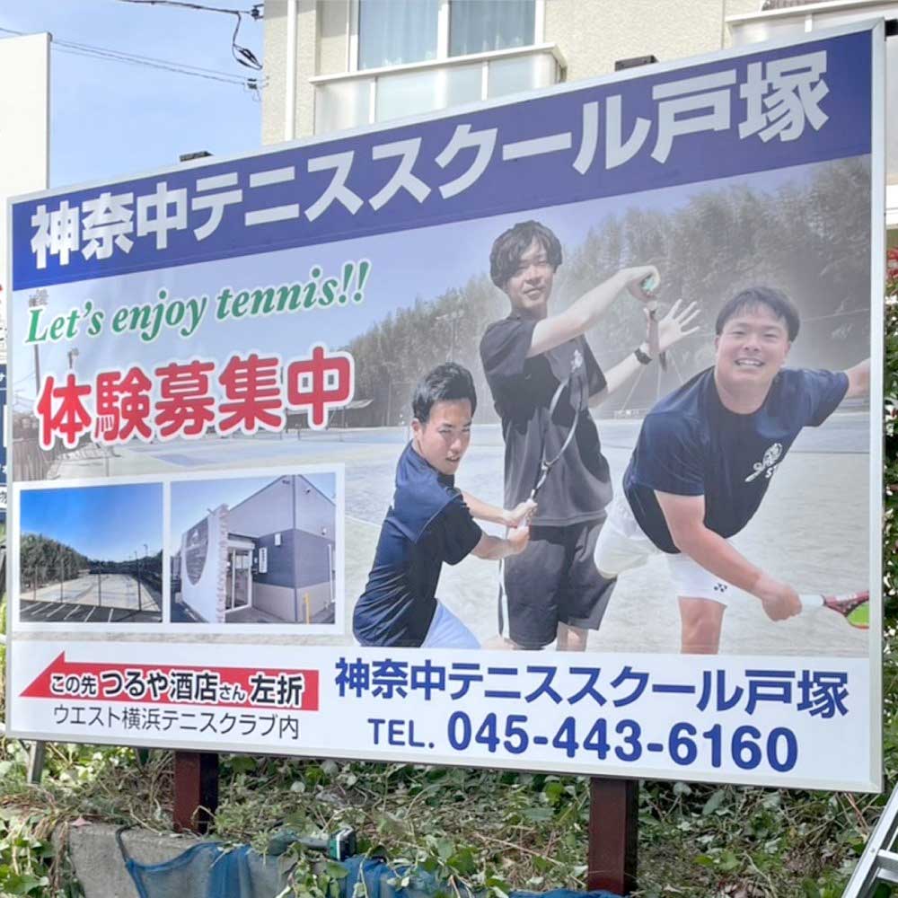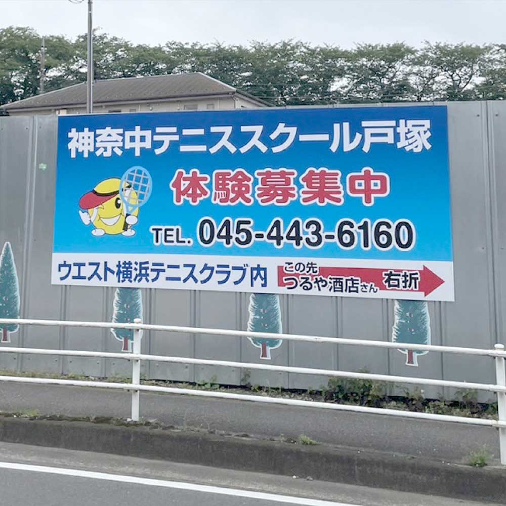 2024年5月にオープンしたテニススクール、神奈中テニススクール戸塚校様(神奈川県横浜市戸塚区汲沢町1320、ウエスト横浜テニスクラブ内)の案内看板などを製作・施工いたしました。 同校は砂入り人工芝コート5面を備えたアウトドアテニススクールです。