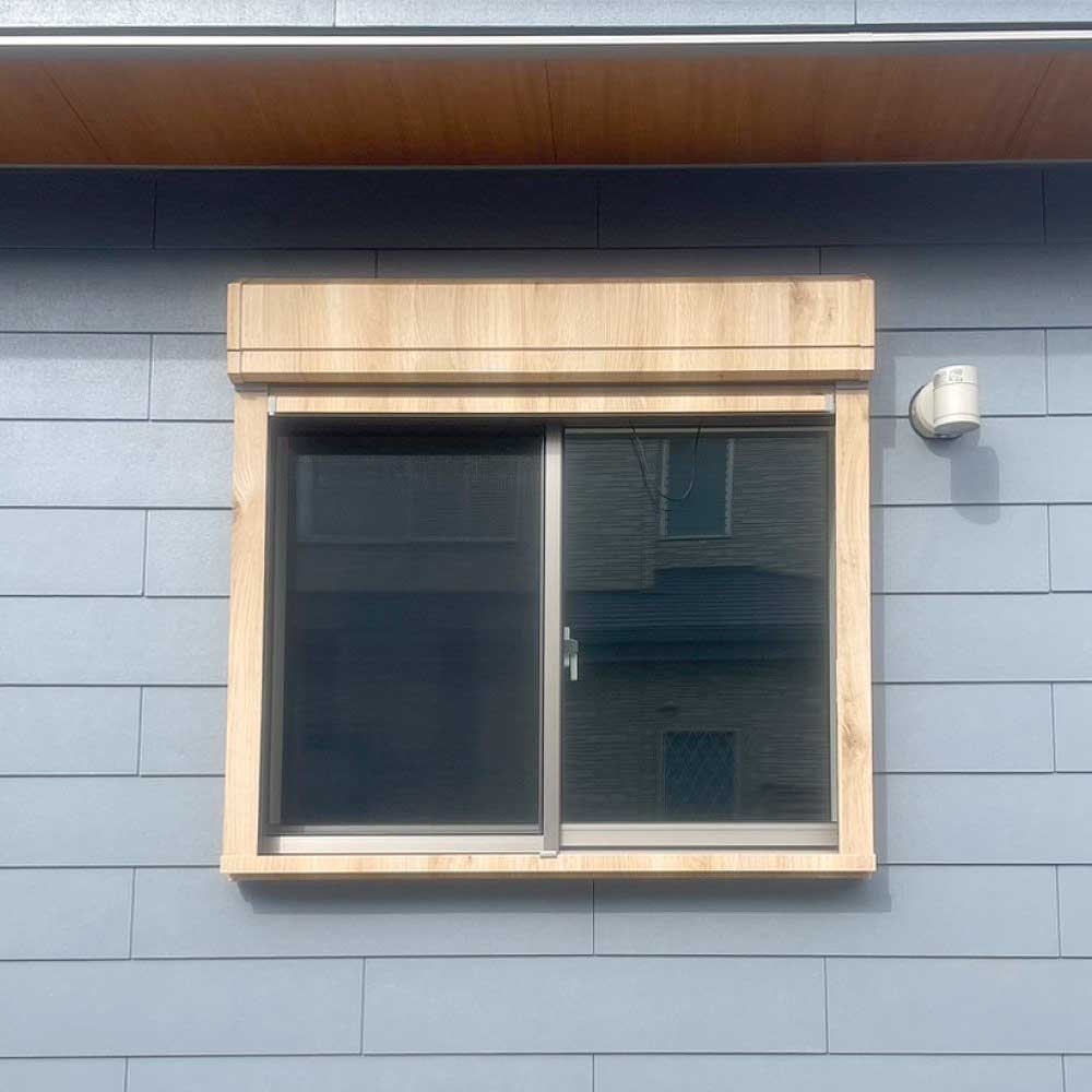 新築住宅の窓枠のアルミサッシにダイノックシート(硬質塩ビタックシート)を貼る作業をいたしました。
