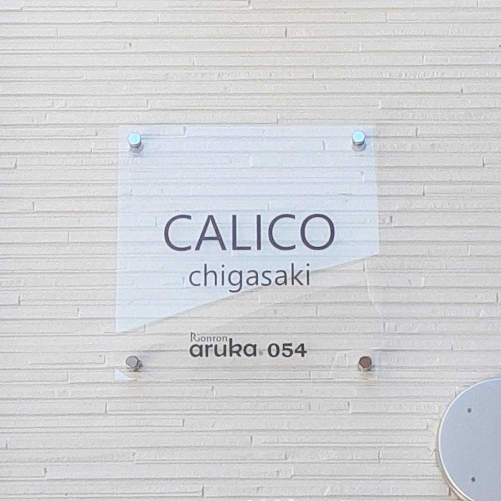 神奈川県茅ヶ崎市本村の木造賃貸アパート、キャリコ茅ヶ崎の館銘板を施工いたしました。 アクリル板にエッチング1色塗装です。