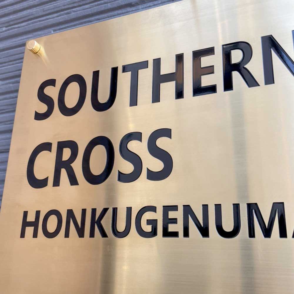 神奈川県藤沢市本鵠沼の賃貸アパート、サザンクロス本鵠沼の館銘板を製作・施工いたしました。